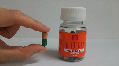 当院でお奨めしている飲む日焼け止め『ヘリオケア』は、UVAに対する防御効果を有することが証明されており、世界中で販売されています。主成分はシダ植物から抽出したものでして、ビタミンも多く含んでおります。カプセルの色に驚かれる方もいらっしゃいますが、化学薬品は使用しておりませんのでご安心ください。